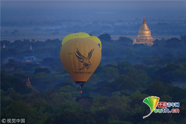当地时间2019年1月12日,缅甸蒲甘热气球,它是世界最佳观赏热气球的地方之一,因为这里的热气球都是和太阳一起升起来的,晨光袅袅中万千佛塔散落在蒲甘大地,彩色的热气球冉冉升起,新生的红日美得震撼。从地面升腾而起的热气球仿佛是连接时空的纽带,何其的壮观和秀丽。位于缅甸中部的蒲甘是世界上最伟大的考古遗址之一, 一片绿意盎然的26平方英里的平原,部分覆盖在棕榈树和罗望子树林中,乘坐热气球可以俯瞰遍布着2000多座寺庙和佛塔的蒲甘平原,非常地壮观。
