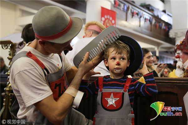 当地时间2019年2月3日,英国伦敦,当地举行第73届“小丑之王”格里马尔迪纪念活动,人们纷纷扮成小丑走上街头。“小丑之王”约瑟夫·格里马尔迪(Joseph Grimaldi)是19世纪英国的一名舞台剧演员,人们认为他发明了经典的小丑造型,并以此来定义小丑的角色。