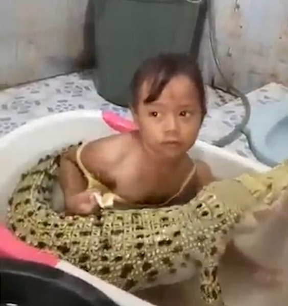 大多数家长可能会在孩子洗澡的时候给他们一只橡皮鸭,而这个印尼家庭却让一只危险的真鳄鱼来陪伴他们的女儿。目前尚不清楚女孩的父母在哪里,也不知道视频拍摄者的身份。(实习编译:庄佳艺 审稿:朱盈库)