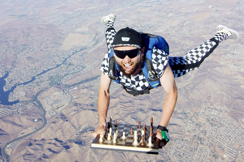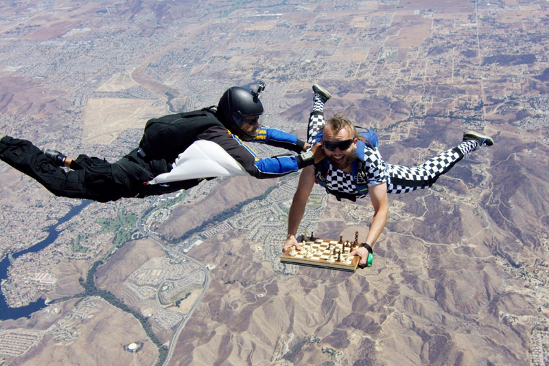 2019年4月24日报道,31岁的Timur Faridovich Gareyev来自乌兹别克斯坦塔什干,是一名棋手,近日他将要参加美国加州的圣地亚哥象棋公开赛,在这之前,Timur还参加了一场最艰难的“比赛”。Timur从距离地面数千英尺的飞机上跳下,在玩跳伞的同时带着他的棋盘,在高空“下象棋”。