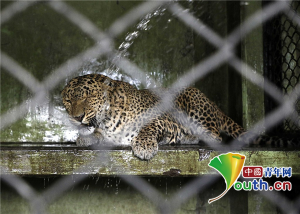 印度持续高温 老虎豹子享受空调冲澡消暑
