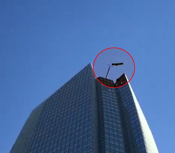 据悉,这座位于俄克拉荷马市的大厦就是有50层的“德文大厦”,高约850英尺(约合259米),中间两侧的建筑体高出楼顶20英尺(约合6米)。事发当天早上约7点45分,两位工人被困在位于楼顶塔吊下的吊篮里。当时刮着大风,吊篮在空中疯狂地摇摆,两位工人紧紧地抓着吊篮的栏杆。在视频还可以看到,吊篮在来回晃动时还碰到大厦顶部两侧的建筑体,撞碎了窗户的玻璃。