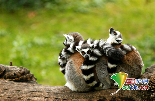 实拍罗马动物园环尾狐猴 斑纹长尾令人眼花缭乱