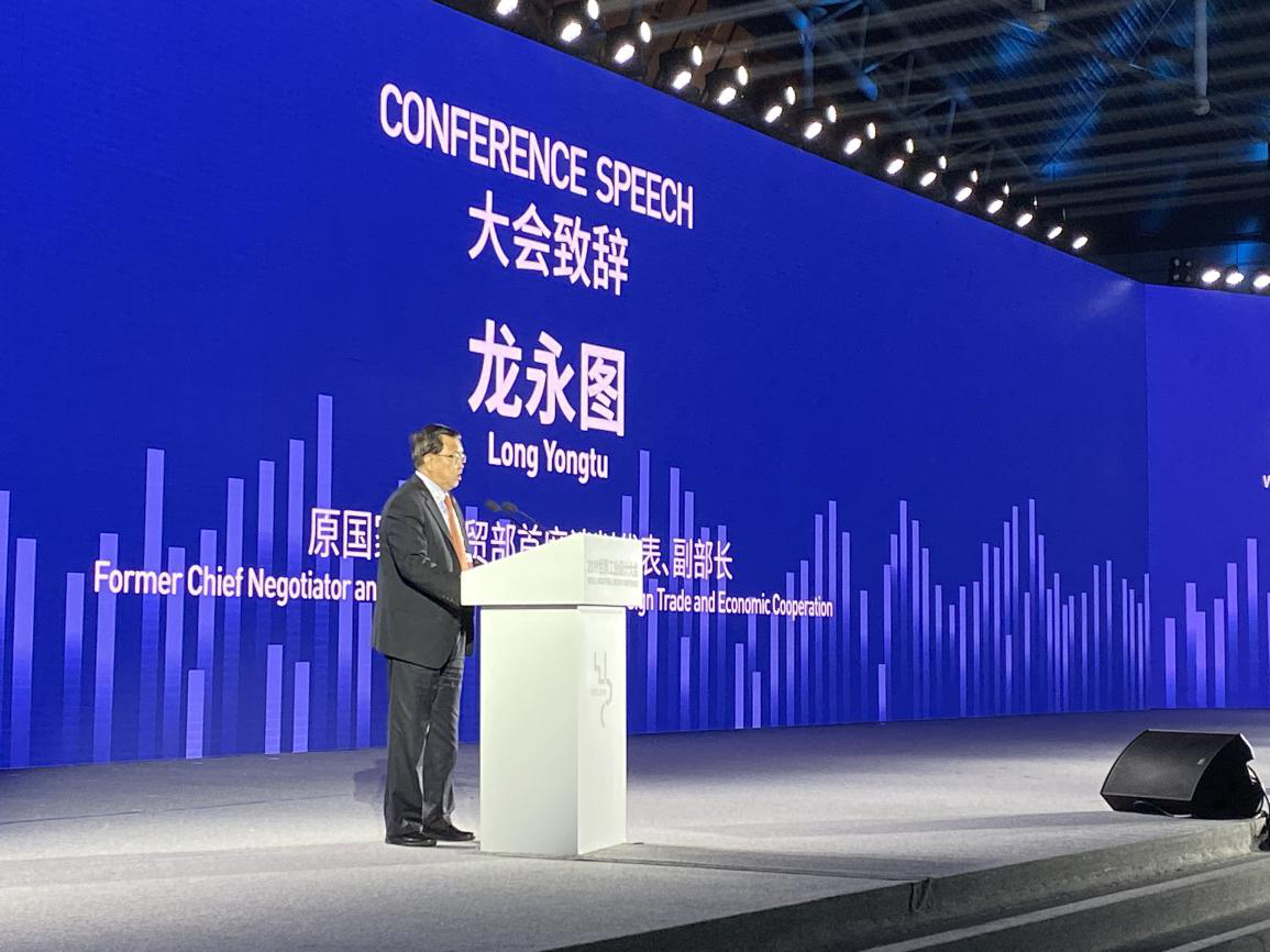 原国家外经贸部首席谈判代表、副部长龙永图致辞。主办方供图