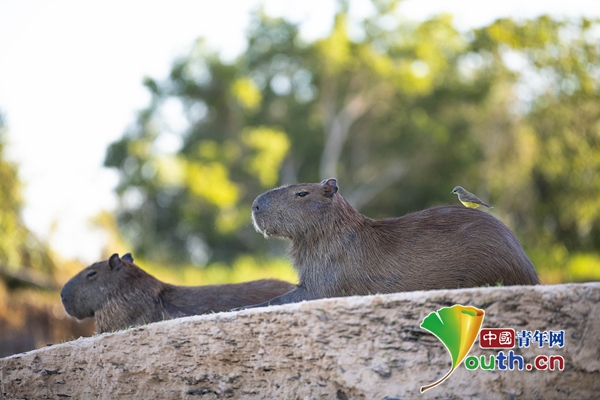 今年7月在巴西潘塔纳尔,一只勇敢的小鸟俯冲到一只毫无戒心的水豚身上降落。然后,这只“巴西清洁鸟”会检查水豚皮毛里是否有蜱虫,并以此为食。它使水豚和鸟之间形成了互利的关系,因为小鸟能帮这种身长4英尺(约合1.2米)的哺乳动物驱虫。野生动物摄影师杰基·巴登霍斯特在潘塔纳尔的一条河边捕捉到了这些瞬间,该地区是世界上最大的热带湿地。