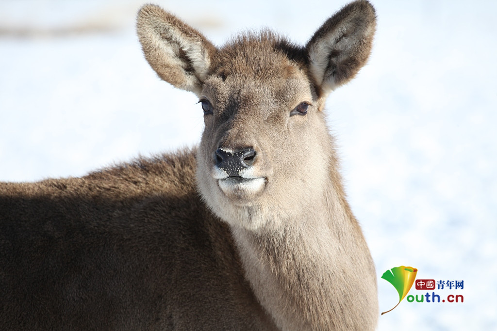 2019年12月8日,新疆哈密,天山马鹿,是产于新疆天山的马鹿亚种,野生天山马鹿是国家二级保护动物,生活在北天山深山丛林中。经家养驯化后的天山马鹿,数量多而高产,当地称为"青皮马鹿"。产于哈密地区的伊吾、巴里坤草原的天山马鹿,俗称"黄眼鹿",具有性情温顺,耐粗饲料,抗病力、繁殖能力及适应性强,产茸量高。入冬以后,东天山北麓的松树塘草原,大地被皑皑白雪覆盖,走出山林结群觅食的马鹿,成为雪域草原上一道靓丽的风景。实行封山育林以来,东天山生态环境得到了有效保护,生活在林区里的野生马鹿种群数量逐年增多。