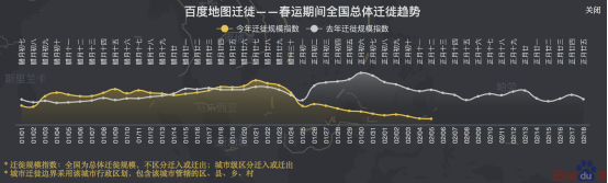 疫情当下,春运返程的趋势变化备受关注。百度地图迁徙大数据平台近日推出春运期间全国总体迁徙趋势和城内出行强度趋势查看功能。