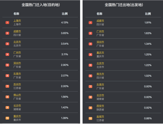 (2月5日,全国热门迁入地、迁出地)