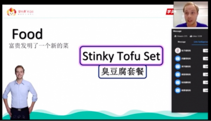 幽默的教学风格加上熟悉的中国食谱,渐渐激起了孩子们开口说英语的勇气。在接下来的课堂上,同学们从使用对话栏打字回答问题,到接受王富贵的连线提问,到主动发来通话申请,面对学生们一点点的变化,王富贵惊喜连连,不断以Good(好)、Excellent(优秀)、Perfect(完美)来肯定和赞扬孩子们的回答。