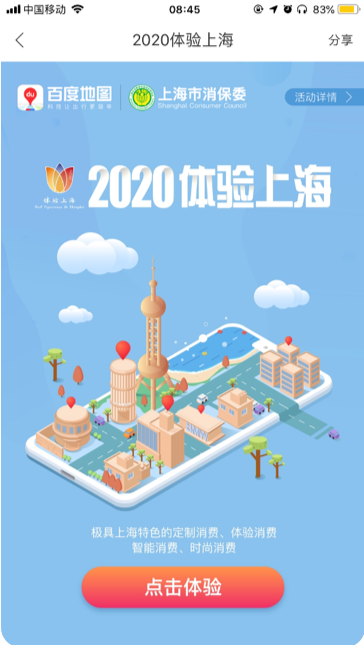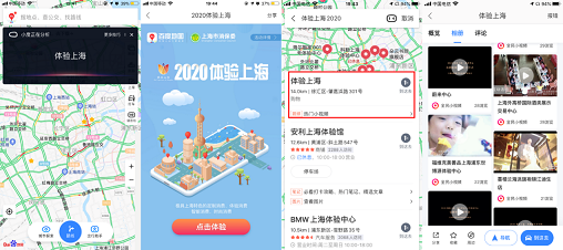 4月28日,百度地图与上海市消费者权益保护委员会宣布达成战略合作,并联合开展“2020体验上海消费体验馆”活动,致力于提振消费信心、促进消费回补和潜力释放。百度地图作为“2020体验上海”官方指定入口,汇聚了上海21家品牌体验馆的位置信息、相关介绍和图片视频,让用户感受到极具特色的定制消费、体验消费、智能消费、时尚消费。