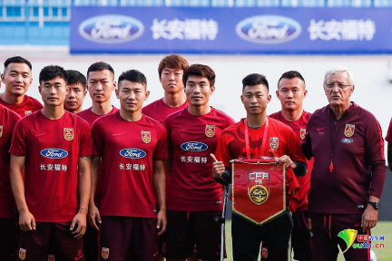 2017年,时任中国国家男子足球队主教练的里皮钦佩于何忆义对足球的执着和不懈追求,带领国足全队向他赠送了国足的队服和队旗。受访者供图