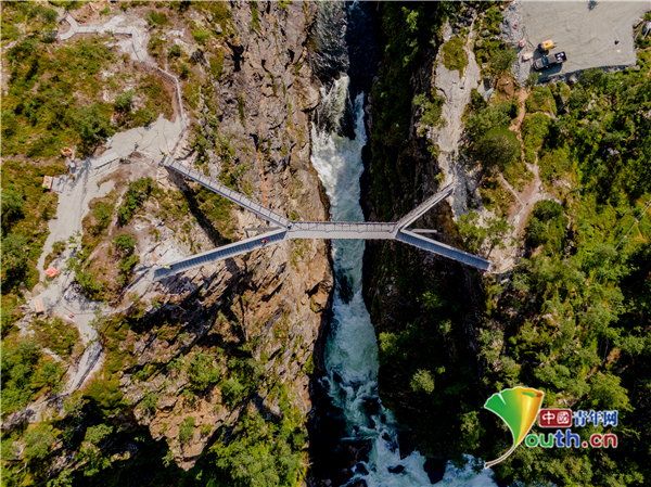 当地时间2020年8月19日,挪威哈当厄尔,著名的Voringsfossen瀑布附近新建一座人行桥。这座桥梁横跨峡谷,比182米高的瀑布还高50米,将于21日正式开放。