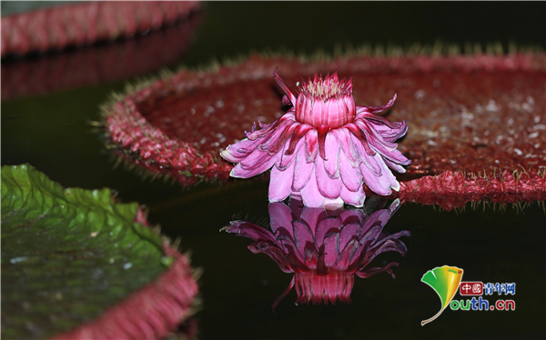 当地时间2020年8月24日,韩国,韩国咸阳郡,上林莲花园区,被称为“夜间女王”的维多利亚莲花盛开。