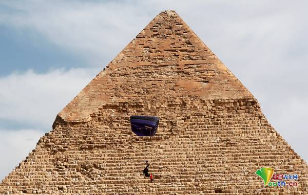 当地时间2020年11月8日,埃及吉萨,专业跳伞运动员参加名为“像法老一样跳跃”的国际活动,从高空飞驰而下,飞跃金字塔,从上帝视角这一世界奇观一览无余,分外震撼。