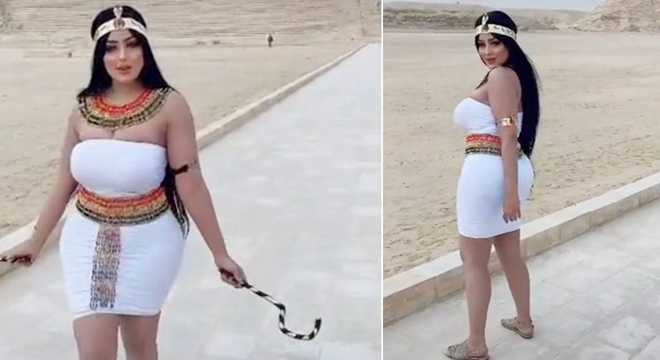 据英国《镜报》12月2日报道,模特Salma al-Shimi上周在社交媒体上分享的照片被贴上了“挑衅和冒犯”的标签,照片中她身穿性感的法老造型服饰站在可以追溯到4700年前的乔瑟金字塔台阶旁。Al-Shimi在Instagram上有数千名粉丝,在照片被广泛分享后al-Shimi和摄影师Houssam Mohammad在埃及被拘留,据称是他们被指控“未经授权在萨卡拉考古遗址旁拍照”。当地官员愤怒地表示这些照片是不尊重文明和历史的。埃及最高文物委员会秘书长说:“任何不尊重埃及文明的人都将面临惩罚。”而这位模特则在检察官面前表示,她的目的是为了促进当地的旅游业,而不是冒犯他人。