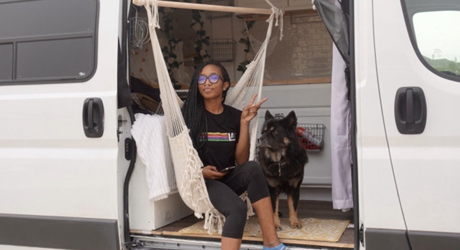 据英国《都市报》报道,28岁的Jasmine Wilson年收入30万美元左右,她肯定是能买得起一套合适的房子的。因此,对于这位来自密歇根州巴特克里克(Battle Creek)的高级产品设计师来说,选择过上车旅生活并不是因为经济问题,而是她个人的喜好。她表示,“我一直都很喜欢公路旅行,因为我妈妈以前一年要开车从密歇根州到加利福尼亚州探亲好几次,我就喜欢上了这样的生活。在疫情隔离期间,我们被困在房子里不能出去,所以我就决定住在房车里。”