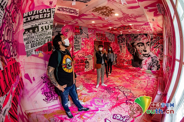 当地时间2021年6月27日,法国巴黎,一组由多位街头艺术家绘制的艺术涂鸦在一栋废弃建筑物内展出,民众前往参观。这组涂鸦是多彩艺术节(Colors Festival)的一部分,该节日从5月20日举行到6月30日。
