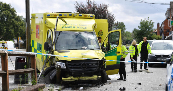 SurreyLive的记者James Flanders说:“这辆救护车好像向左转弯时拐到了人行道上,然后撞上了公交车站。玻璃碎了一地,车灯和保险杠也散落在路上。”