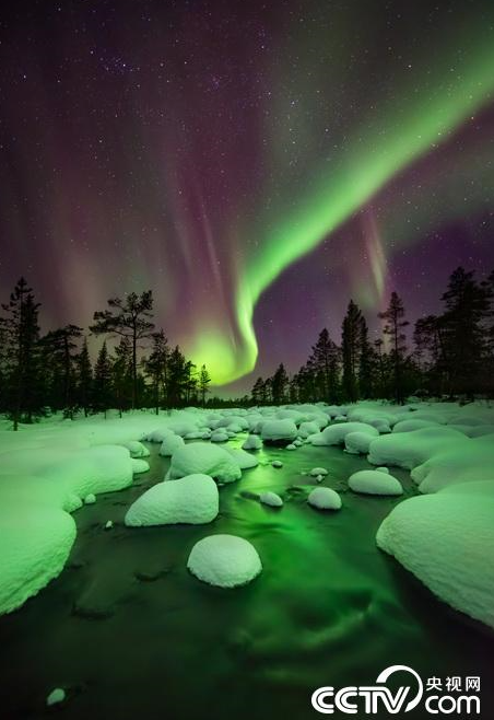 当地时间2022年3月8日,俄罗斯摩尔曼斯克,科拉半岛现绝美极光。视觉中国
