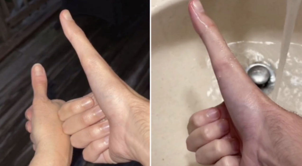 23岁的Jacob声称,几年前他发现自己可以把大拇指完全伸直,自那以后他就宣布自己是‘拇指大战’的冠军了。