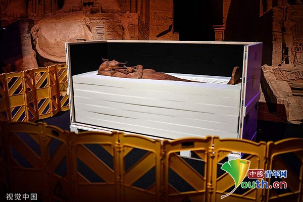 法国巴黎展出古埃及拉美西斯二世国王棺材