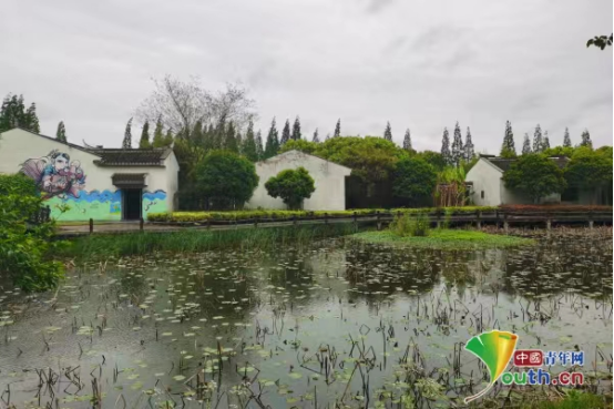 民居傍水而建,水中种植着荷花。目前蒋巷村种植着100亩以上的荷花,既供观赏,也作为生产医药、保健品的原材料,莲心经过加工还可作为食品出售。中国青年网记者张秋红摄