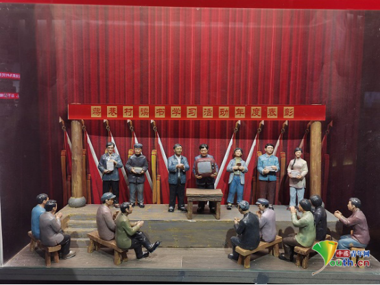 蒋巷村举办读书学习活动的模型。2000年至今,村委会给每个家庭赠送“四报一刊”,每年开展读书学习先进家庭评选活动。中国青年网记者张秋红摄