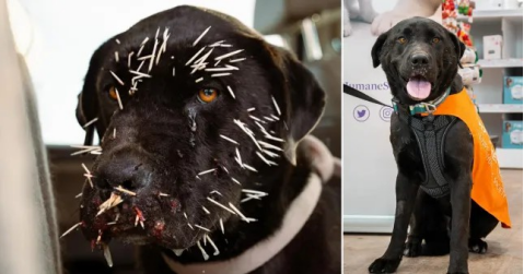 据英国《都市报》3月14日报道,一只黑色拉布拉多犬的鼻子、嘴巴和眼睛周围插满了豪猪身上的刺,后被救助。
