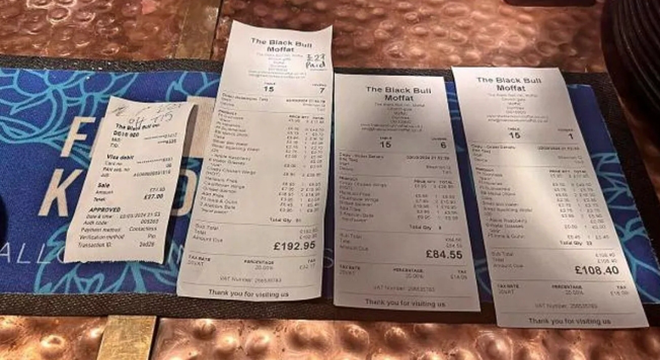 这群人在邓弗里斯郡莫法特的黑牛餐厅吃饭,吃完后没付钱就离开了餐厅。52岁餐馆老板 Janie Seaton称在这几位顾客投诉菜品不好后,工作人员已经从账单中删除了他们的主菜,但他们的态度仍非常不好,拒绝支付剩余的300英镑(约2750元人民币)。