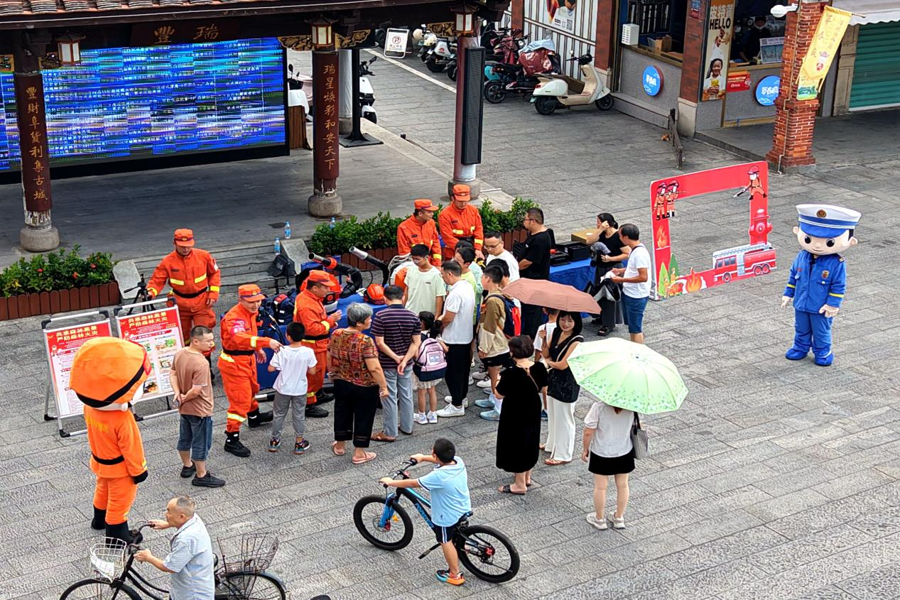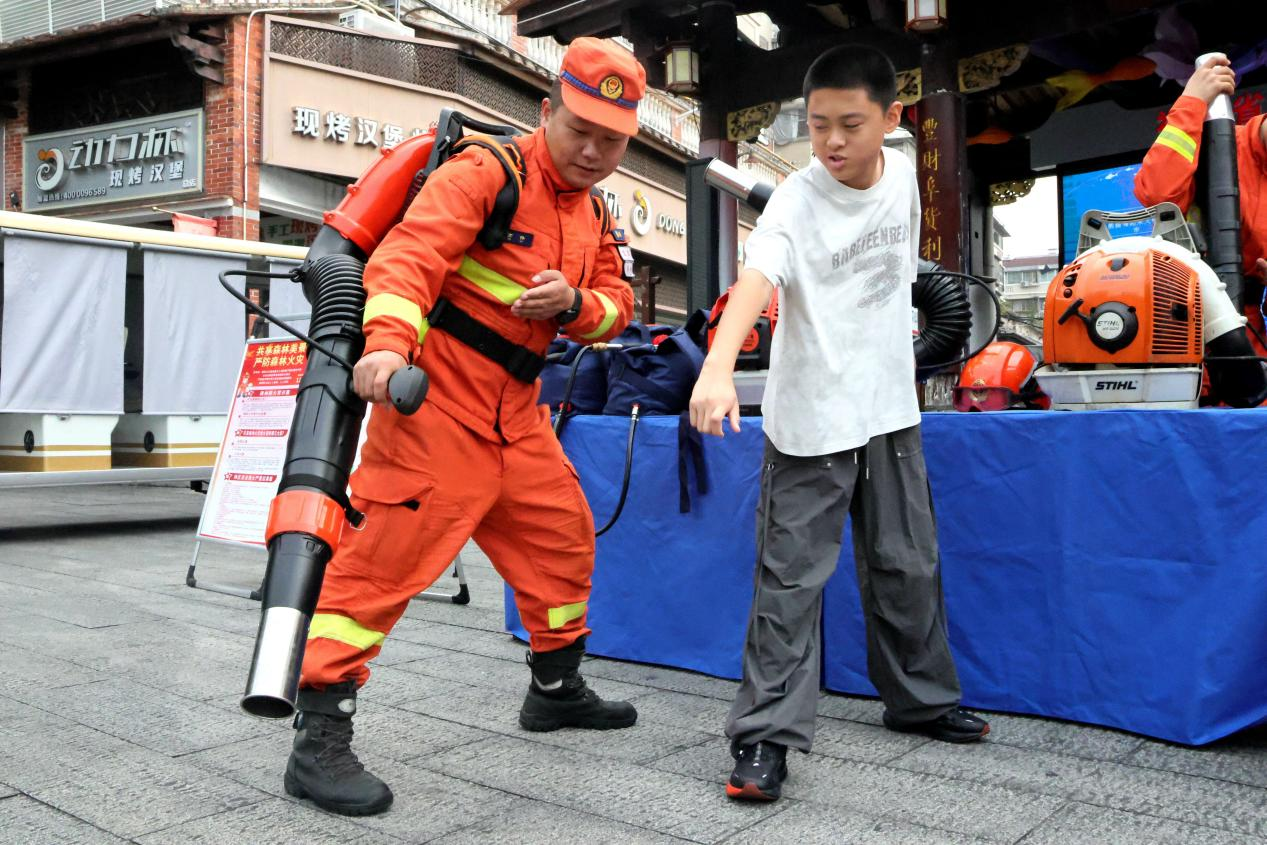 “大爷您好!国庆节进山赏景可别忘了用火安全,要是发现森林火情,第一时间拨打12119火警电话,咱们早发现早处置!”“小朋友快来看,这台‘大家伙’是风力灭火机,森林里遇到小火苗,它可是灭火‘好帮手’呢!”在漳州市区古城北广场、长泰天柱山风景区等地,指战员们的宣传声格外亲切。他们穿梭在游客之间,耐心讲解野外安全用火要点:“不随意乱扔烟头、不进林区野炊、不违规燃放烟花爆竹”,每一句叮嘱都紧扣防火要点;同时,他们联合驻地志愿者,通过发放森林防火宣传单、开展林内携装巡护、现场展示灭火装备等多样形式,把森林防火的重要性、防火期林区用火禁忌讲深讲透,让“防灾减灾”的意识悄悄走进每个人心里,从源头减少森林火灾风险。