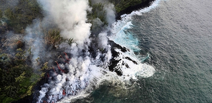 法国留尼汪岛圣罗斯,富尔奈斯火山熔岩流入海洋。该火山于2026年2月13日开始喷发,熔岩流在距离海洋150米处停滞数小时后,于3月16日最终...
