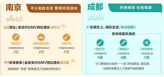 以成都为例,2025年的音乐节订单增长超4倍、演唱会订单增长近5成,体育赛事订单增长超7成。另外,上海作为全国“消费第一城”,去年的音乐节订单增长更是翻26倍,销售额增长超33倍。
