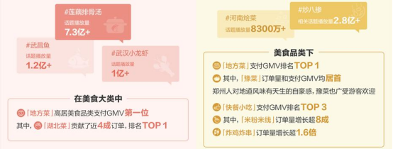 以云贵菜的爆火为例,追溯到2023年,那时以贵州酸汤为代表的云贵美食在抖音走红,后来云贵菜的话题热度、订单量就开始在抖音高速增长。