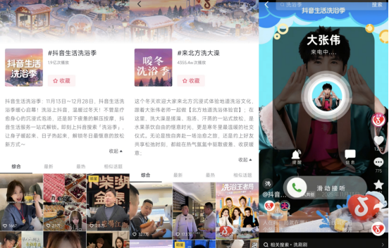 2025年底,结合冬日洗浴猛增的消费需求,抖音生活服务启动了“洗浴季”活动,特别打造“我在北方洗大澡”主题专场,推出明星达人推广、亿级补贴、百店同播等系列举措,联合20000余家洗浴相关商家共同助力冬日“暖经济”。