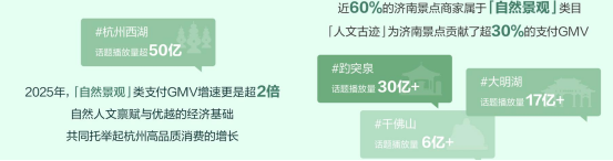 去年,两城的代表性景点话题在抖音爆发,其中#杭州西湖 播放量超50亿、济南#趵突泉 播放量30亿+、#大明湖 播放量17亿+。