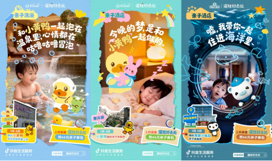 这一普遍痛点背后,实则蕴藏着冬季亲子市场的巨大潜力:如何系统化地承接并激发家庭在寒冷季节的集中消费需求,正成为商家拓展生意增量的关键机遇。基于此,2025年12月12日至2026年1月31日,抖音生活服务发起「冬日遛娃好去处」活动,以“亲子购物、亲子洗浴、亲子酒店”为三大核心品类,通过打造“周五遛娃日”周期性节点、深度联动B·Duck小黄鸭等萌趣IP,并融合双旦、跨年等节庆氛围,为商家提供从内容种草、兴趣激发到线下转化的完整解决方案,精准连接并服务广大宝妈群体,帮助商家在冬季运营周期中,有效承接家庭消费需求,实现品牌差异化塑造与生意可持续增长。