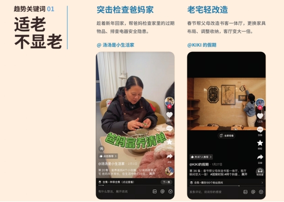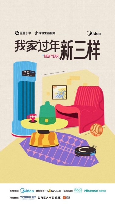 基于抖音平台2025年春节的真实数据与用户观察,抖音生活服务家行业联合巨量引擎商业化IP「家的三部曲」,共同发起春节热点造风项目《我家过年新三样》,重磅发布《2026「年味新生」趋势洞察》报告,梳理出六类核心人群画像、三大趋势及十二大生活场景,同步推出《抖音生活服务2026家居家电【年货】排行》,既用专业数据锚定行业风向,更以温暖笔触捕捉普通人的新春烟火,让我们看见:新年味,早已是传统与现代的共生,是理性与感性的交融,更是“认真爱、用心生活”的本质回归。