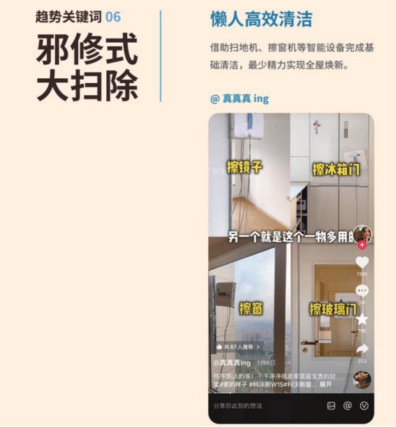 针对年末大扫除的核心需求,DREAME追觅智能清洁设备(如扫地机器人)助力“邪修式大扫除”,以科技提升家务效率,契合年轻人“花钱买时间”的消费趋势,为春节居家清洁提供高效解决方案。