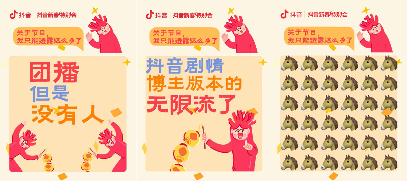 本次抖音新春特别会,依旧延续全民共创的核心,将网友的创意与心愿作为节目创作的重要底色,让抖音网友参与出谋划策。