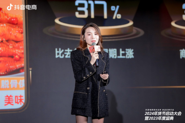 脱骨侠品牌联合创始人谢晓丹也表示,通过抖音电商的扶持和指引,“脱骨侠”完成了从代工厂到无骨鸡爪品类头部品牌的转变,也从抖品牌发展成为了全域品牌。