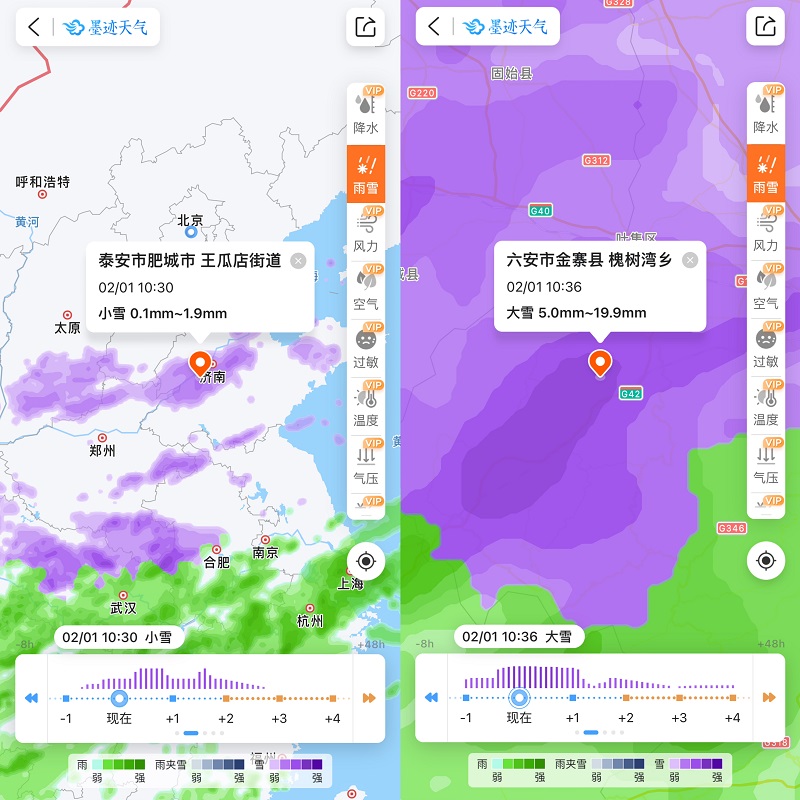 出发当也可通过墨迹天气雨雪地图功能了解降雪的开始时间和高峰时段,避免在降雪的高峰期出发,可以有效减少因堵车而错过高铁的困扰。同时,建议大家提前规划好行程,留出足够的时间以应对突发情况。