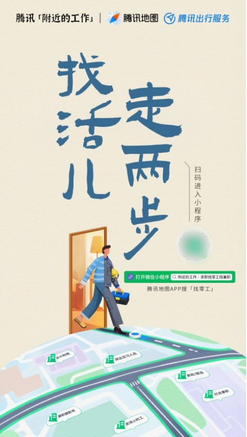 自2024年10月腾讯出行服务在广东江门市率先推出「附近的工作」功能以来,该服务已逐步覆盖河北唐山、江西九江、广东深圳、北京朝阳等多个省市,并与各地人社部门密切合作,累计帮助2.4万余名用户实现就业意向。腾讯通过整合平台技术与各方资源,不仅为零工群体提供了便捷高效的就业服务,也为零工经济的发展提供了切实有效的解决方案和长远发展路径。