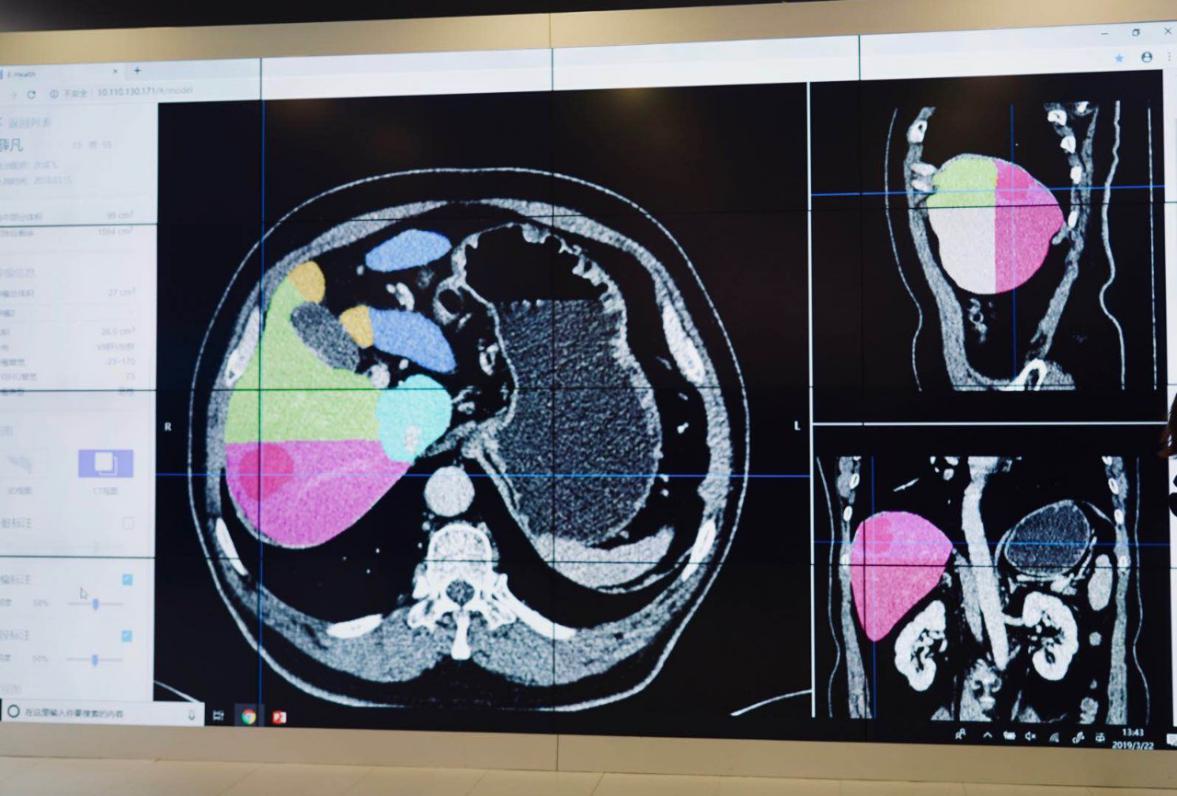 在智慧医疗领域,联想联合一线医疗人员研发了辅助肝脏肿瘤诊疗的E-Health和Holotable系统。E-Health系统可以通过机器学习的方式,对CT进行解析,从而对肿瘤体积、区域做出量化的数据;而Holotable系统可以通过交互式全息,以三维的方式呈现CT重建肝脏、肝段及肿瘤模型的过程,以更加直观便捷的方式帮助医生进行肿瘤手术的术前规划。