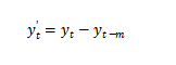 这里的m是周期的数量。这也叫做”lag-m differences”。