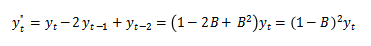 一次差分可以表示为(1-B),那么同样,二次差分可以写成:
