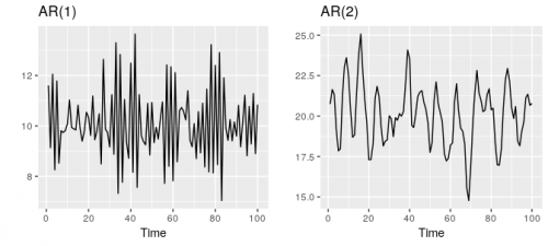 我们可以把任意平稳的AR(p)模型写成MA()模型。比如,我们可以把AR(1)模型写成: