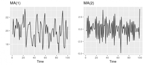 不像AR模型中使用过去的预测变量,MA模型使用过去的预测误差。