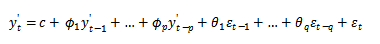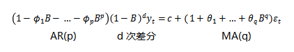 如果我们组合AR和MA模型并差分,我们可以得到ARIMA模型。模型可以写成: