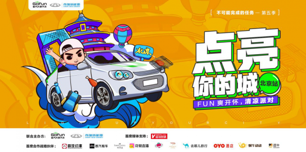 6月15日,GoFun出行“不可能完成的任务”的第五季主题活动——“点亮你的城”线下狂欢来到北京。作为第三站城市,北京市民用自己的特有方式迎接这一场夏日活动,从活动发起到聚会狂欢,不但给用户带来了别具风格的活动体验,直接收获城市战果,同时更让众多品牌通过GoFun搭建的平台与年轻消费群体直接对话,为增强用户粘性提供了新的契机。