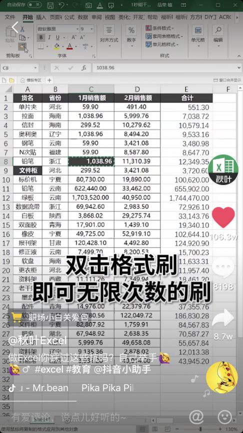为了迎合当下青少年的口味,“秋叶excel”大多选择年轻、有观众缘的小伙伴做演员,这是让青少年喜欢的很重要的方式。在其中一条短视频中,年轻演员们用诙谐的演技向大家介绍了如何利用表格求和、如何使用格式刷、如何快速核对数据,此视频点赞量高达106.3万。“秋叶excel”会进一步丰富场景化,打开更多的干货知识分享通道,让广大青少年学到更多实用的技能。
